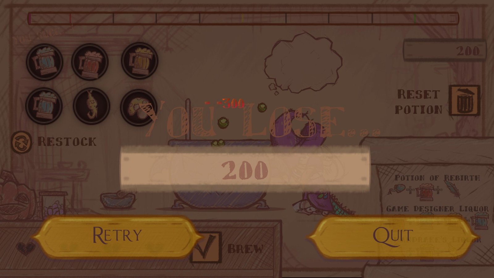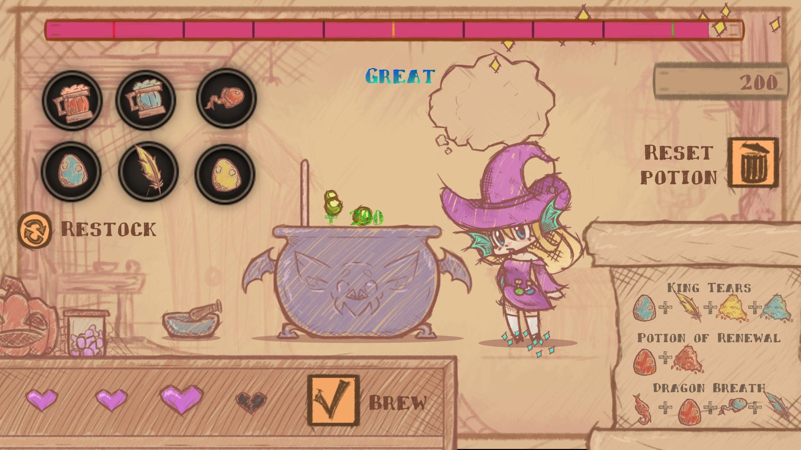 • Score à élever le plus possible en accumulant les bonnes potions fabriquées.